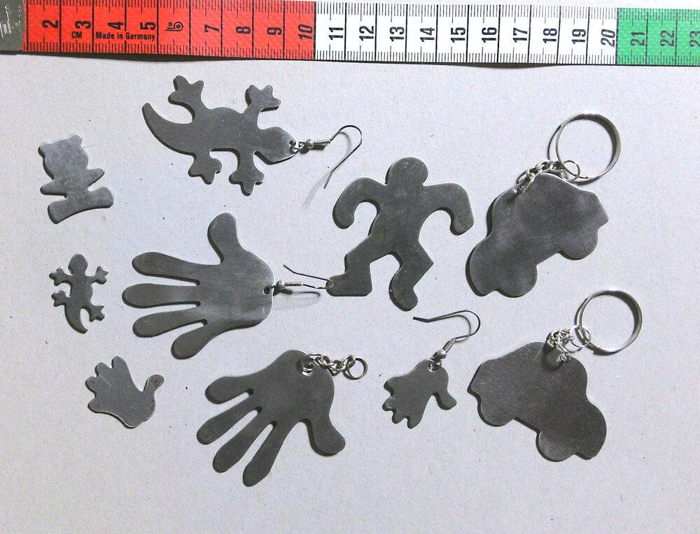 Edelstahlschmuck teilweise mit Fischerhaken (nickelfrei) als Ohrhänger oder mit Schlüsslring Größen bis etwa 5 cm