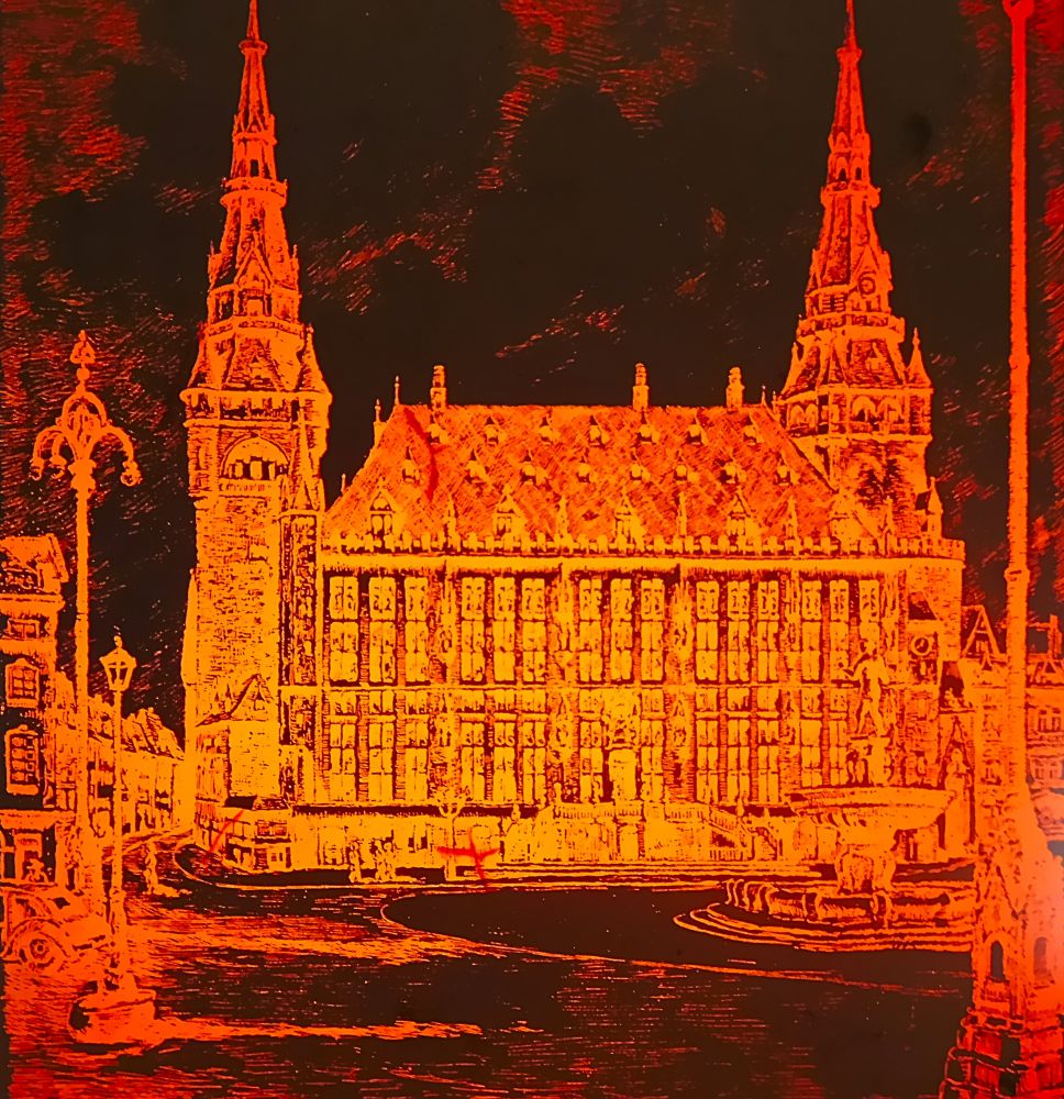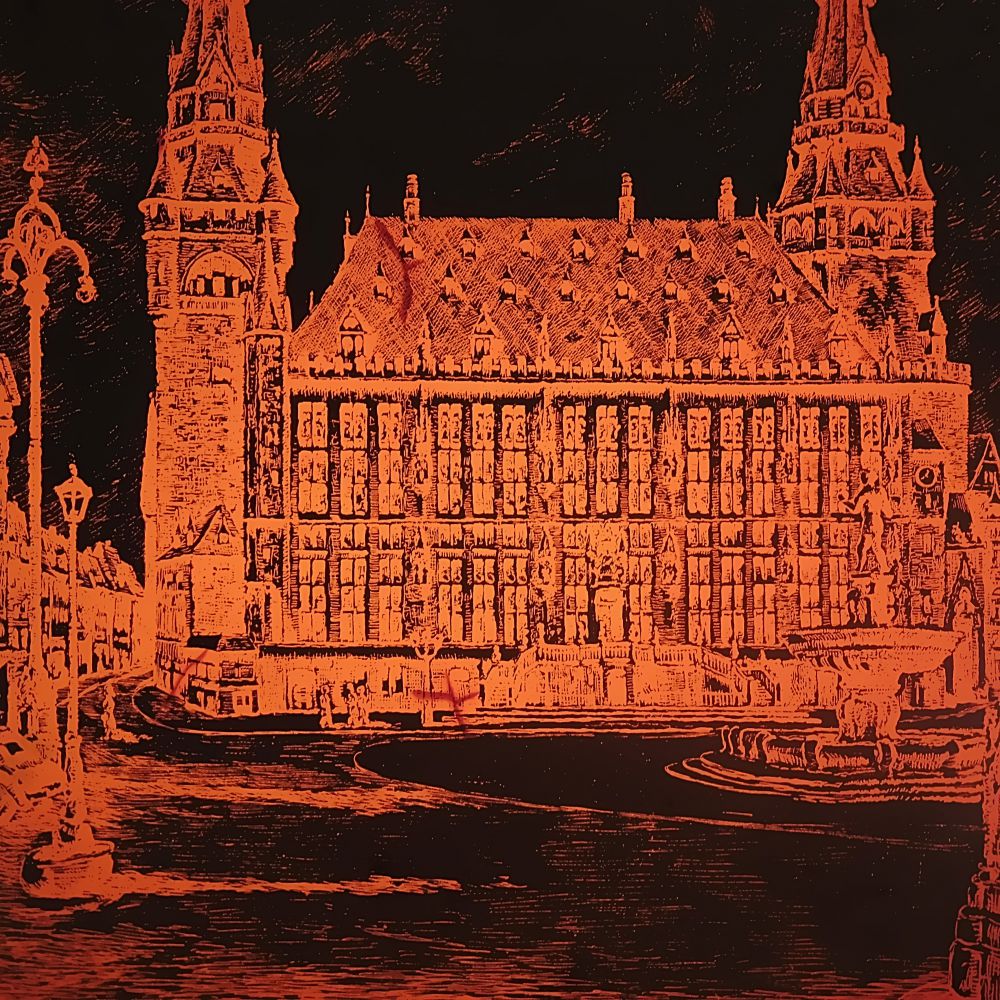 Aachener Rathaus auf kupferkaschierter Pertinaxplatte