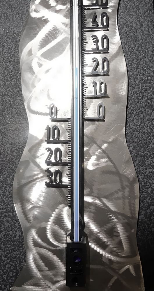 ca. 22 x 7 cm, Skala -30° - 50° Celsius, Aufhängung mittels Bohrloch