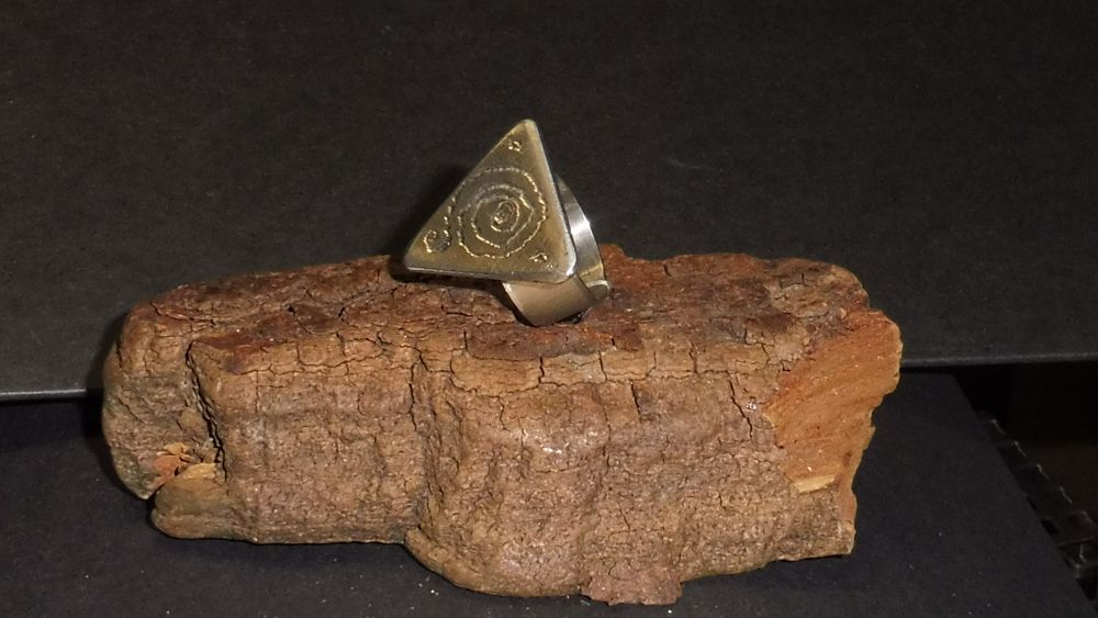 Ring aus Edelstahl (nickelhaltig) mit dreieckiger Applikation