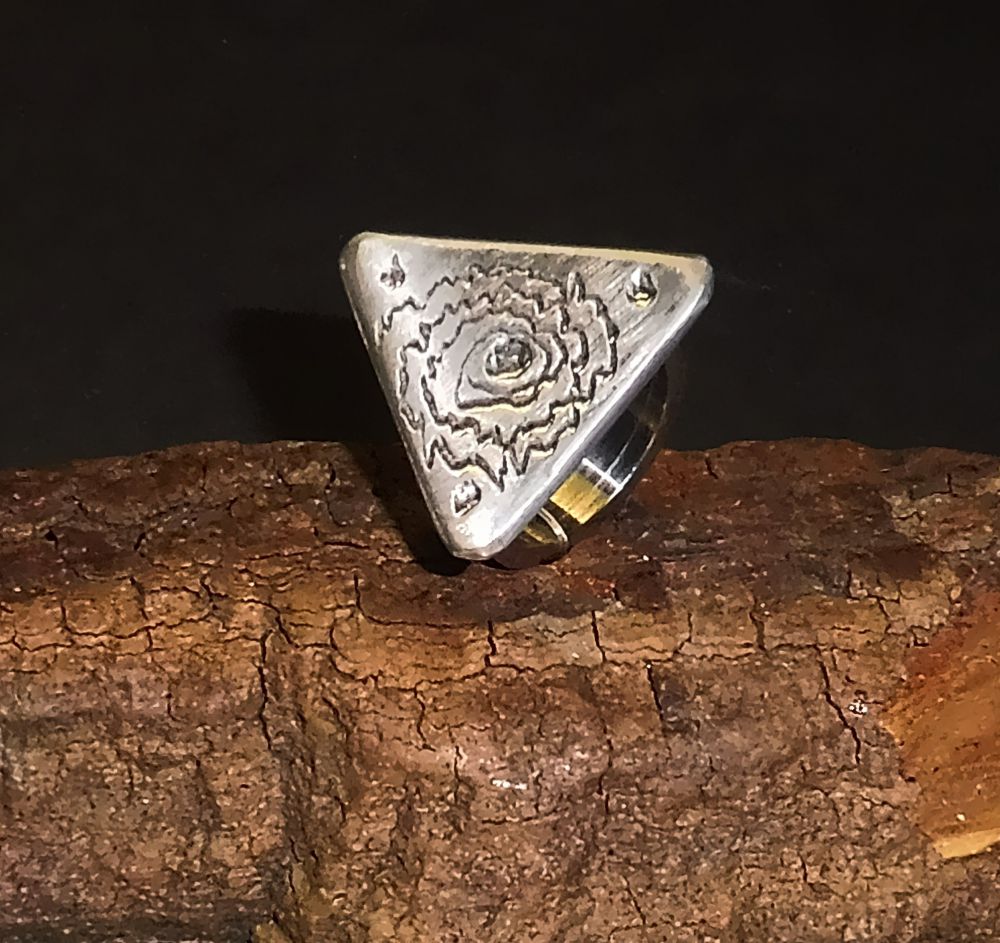 Ring aus Edelstahl (nickelhaltig) mit dreieckiger Applikation