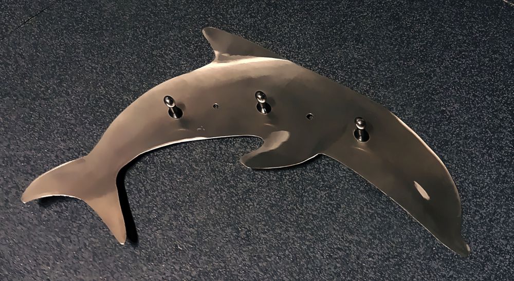 Edelstahl Delfin 28 x 19 cm mit Haken als Schlüsselbrett