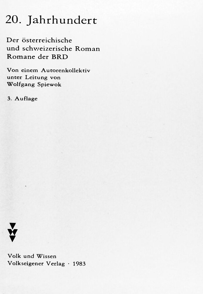 Der österreichische und schweizerischen Roman - Romane der BRD