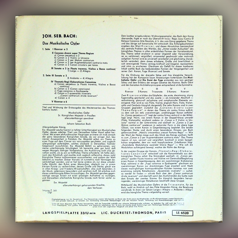 Johann Sebastian Bach - Das musikalische Opfer - Sextett: Alma Musica - Vinyl