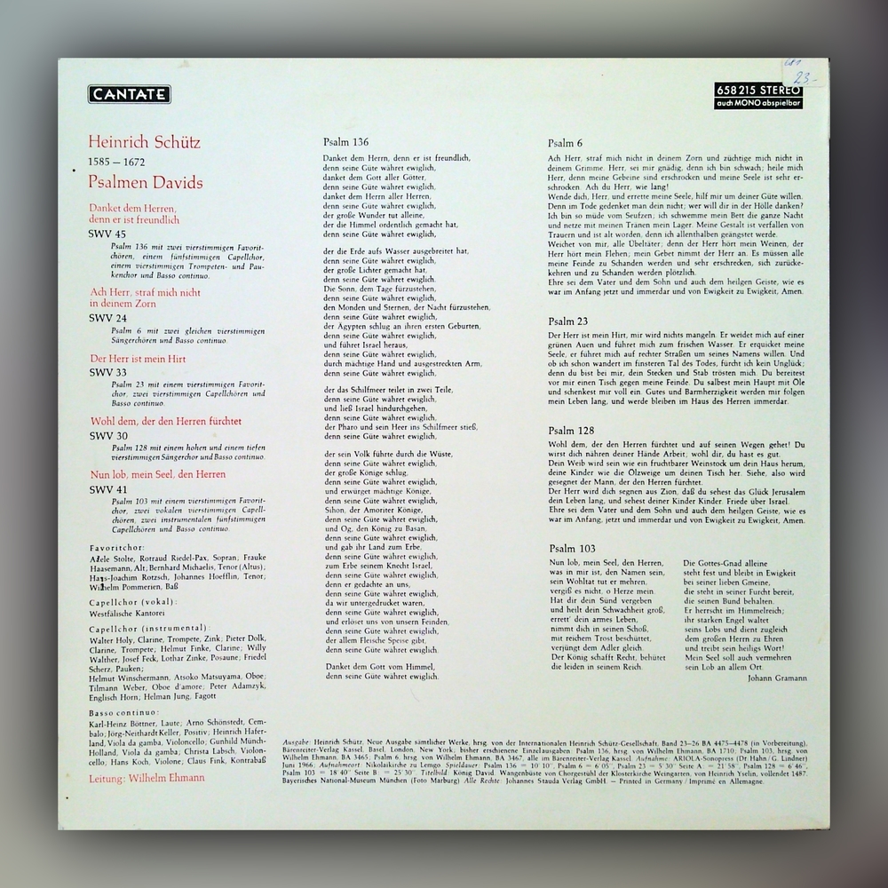 Heinrich Schütz - Psalmen Davids - Vinyl