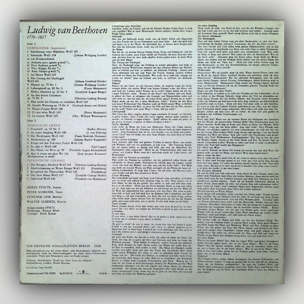Ludwig van Beethoven - Patriotische Gesänge, Besinnliche Lieder, Liebeslieder Supplement - Vinyl