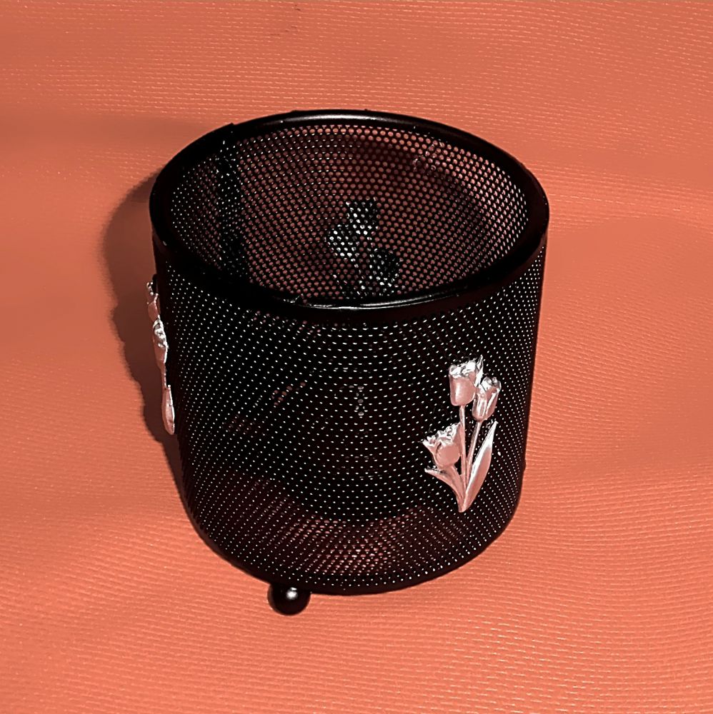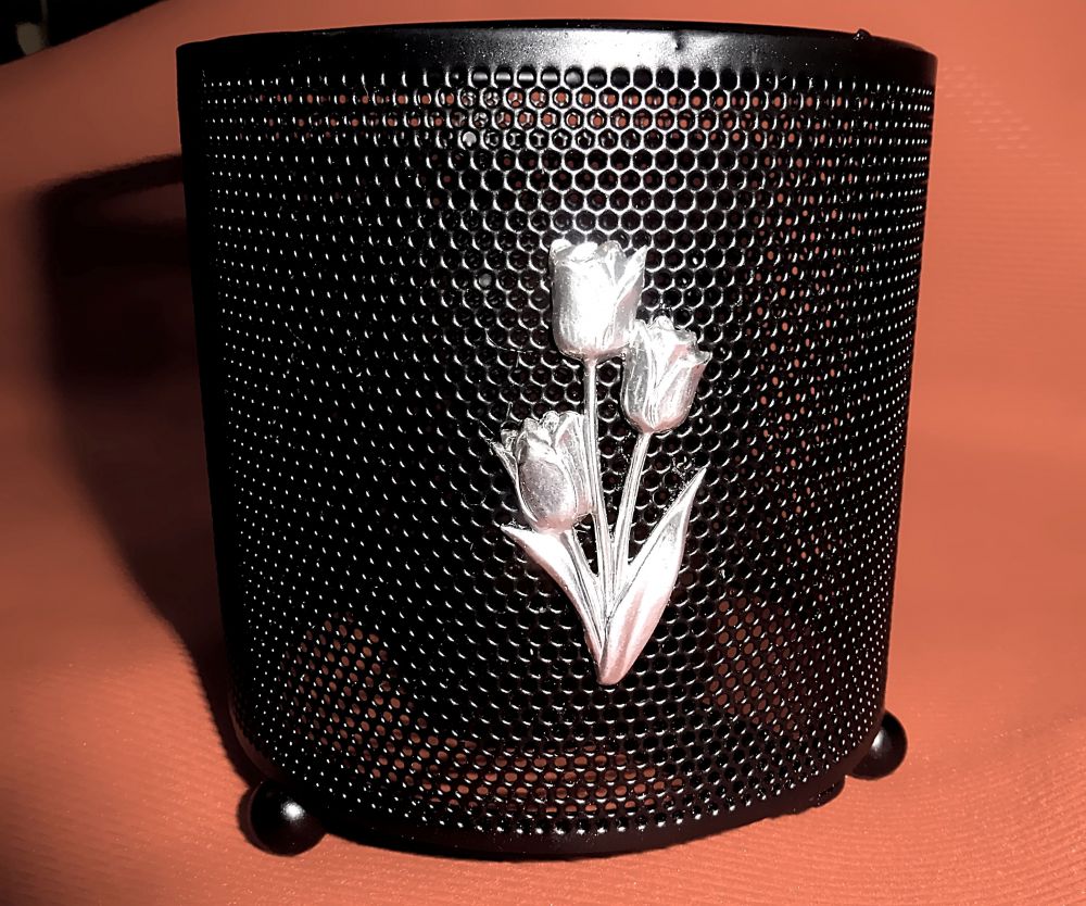 schwarz lackiertes Lochblech, Tulpen (3x) aus Aluminium