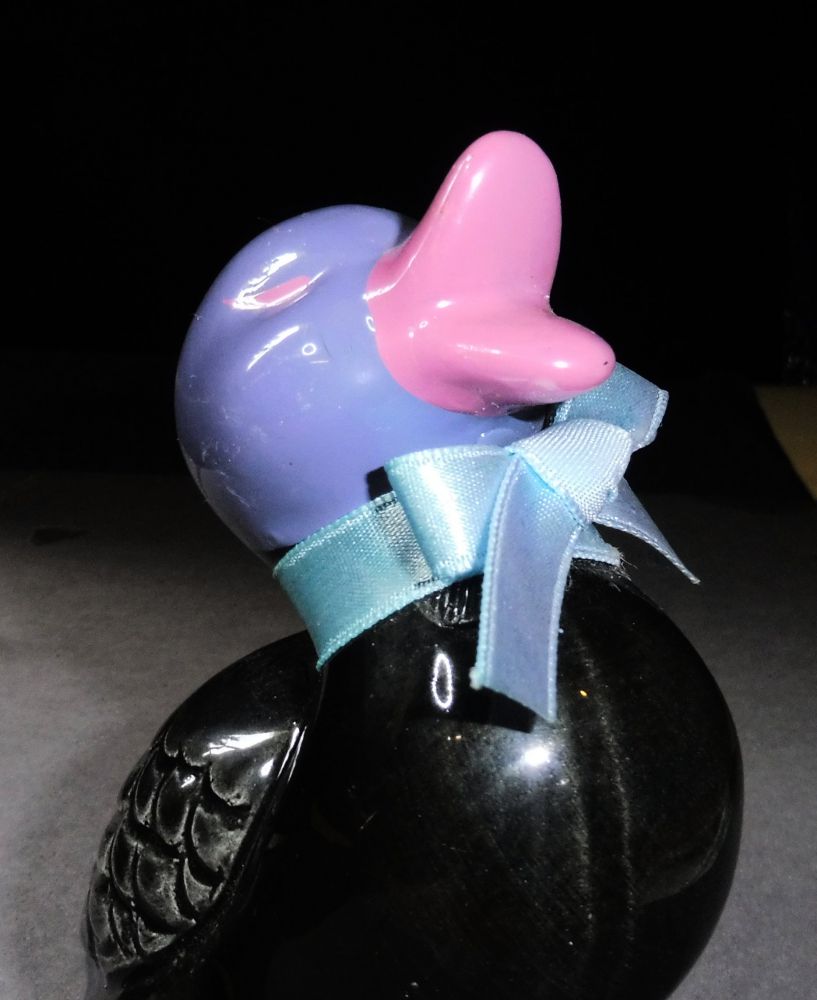 Schwarze Keramik Gans / Ente mit rosa Füßen, Schnabel und lila Kopf