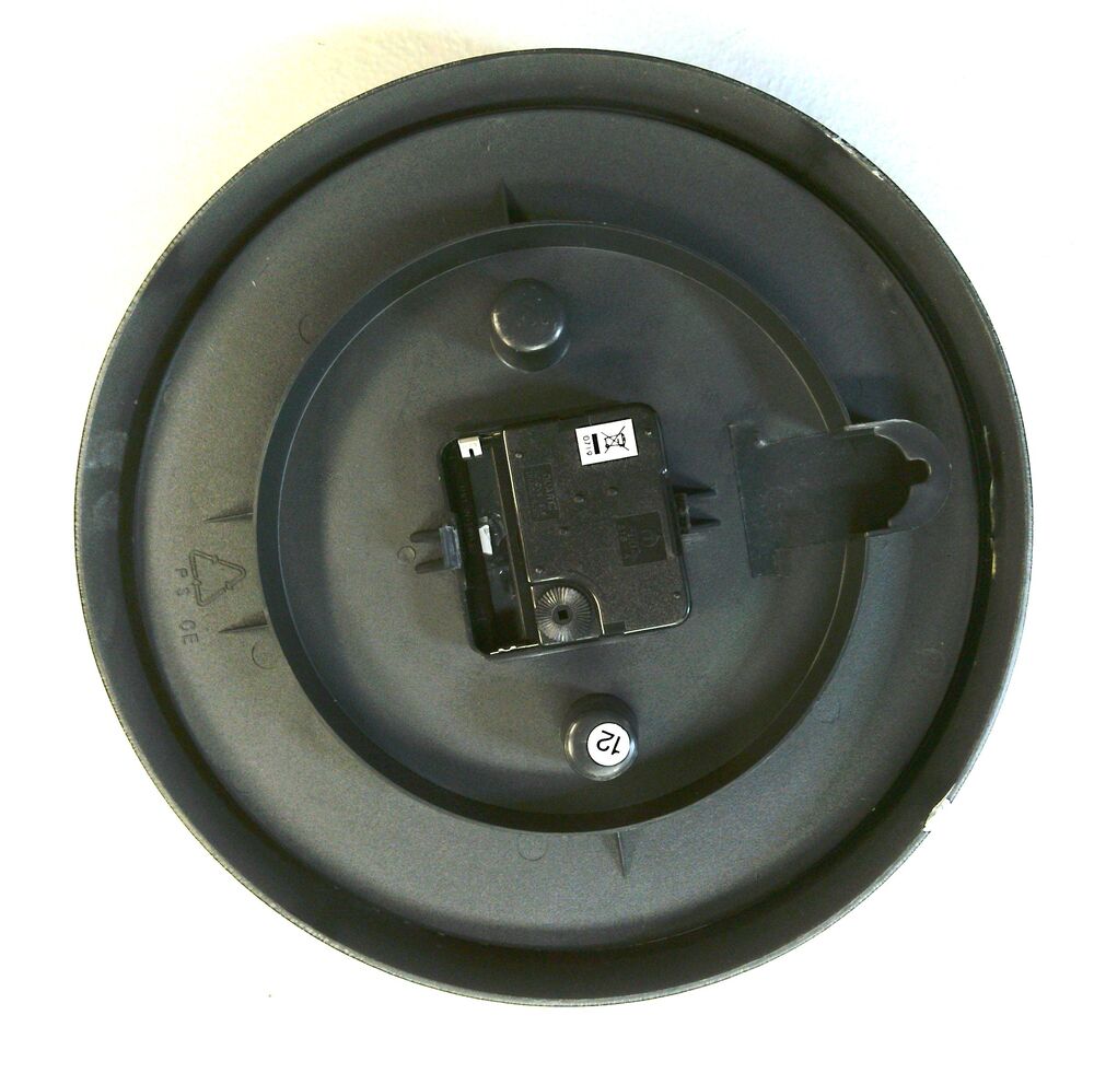 Rahmen Durchmesser 225 mm, 40 mm hoch, Kunststoff silberfarben, Abdeckung Glas, Zifferblatt Foto, ohne Batterie