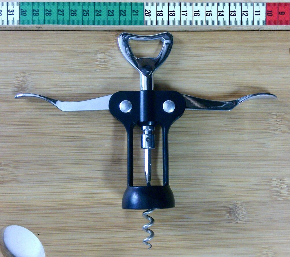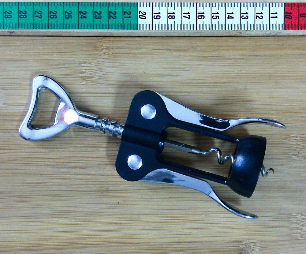 Hebel Korkenzieher mit Kapselheber schwarz chrom
