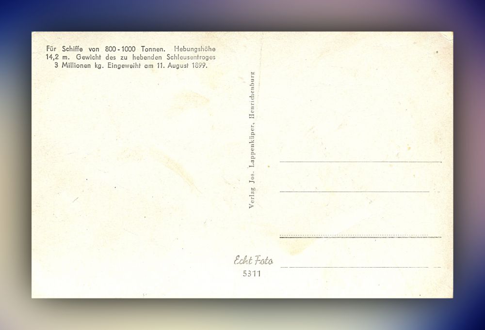 Ansichtskarte Für Schiffe von 800-1000 Tonnen. Hebungshöhe 14,2 m. Gewicht des zu hebenden Schleusentroges 3 Millionen kg. Eingeweiht am 11. August 1899. Echt Foto 5311
