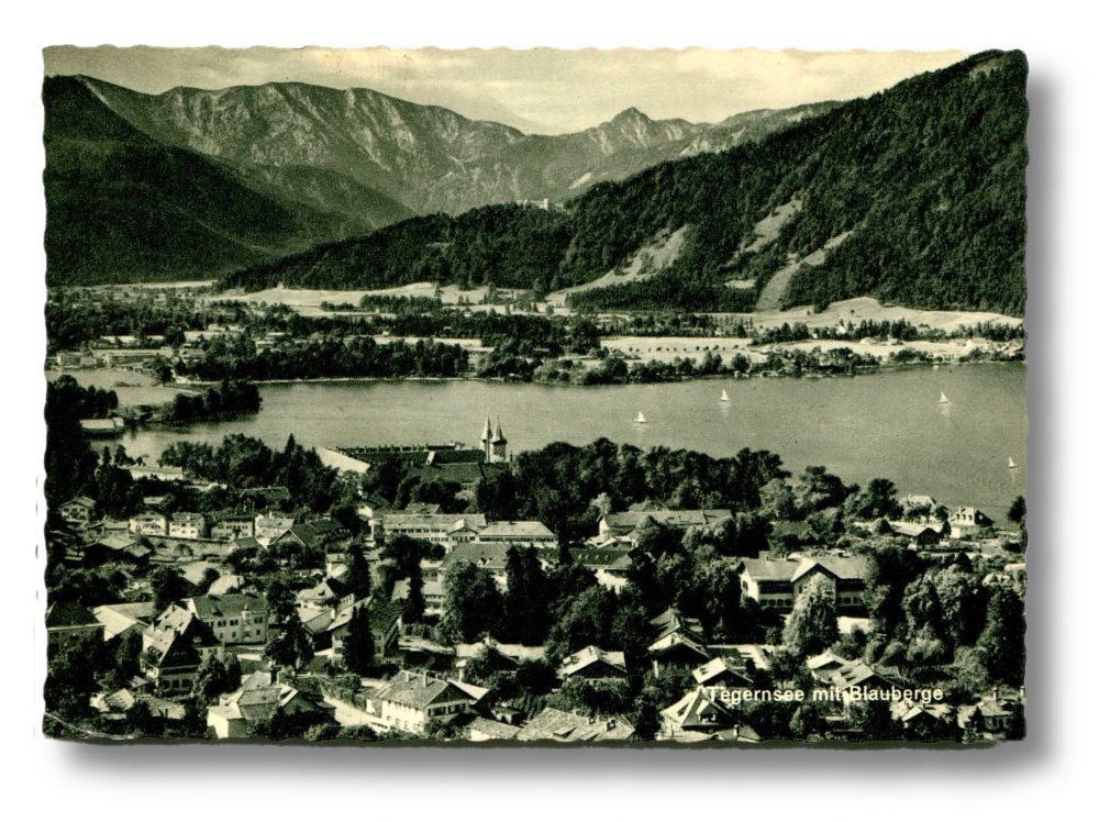 - Motiv: Stadtansicht mit Tegernsee und Bergen (Blauberge) im Hintergrund