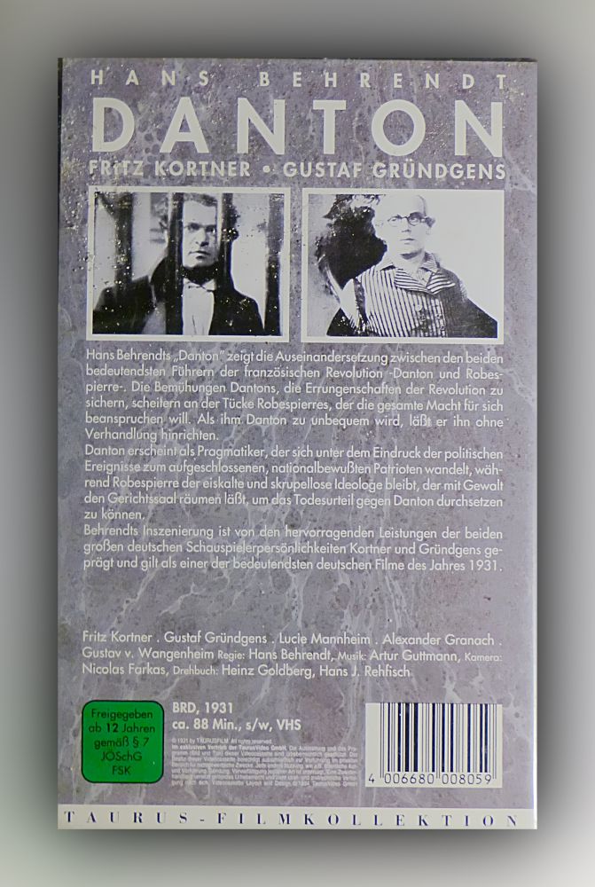 Video (VHS) Die Geschichte der bedeutensten Führer der französischen Revolution - Danton und Robespierre, dargestellt von der Elite der deutschen Schauspieler der frühern 30er Jahre.