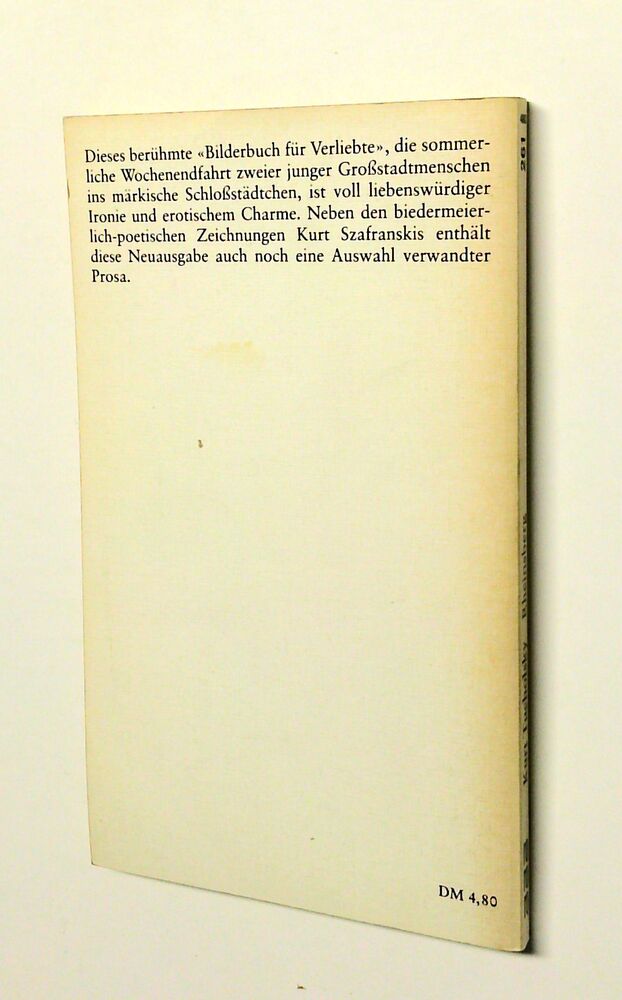 Dieses berühmte «Bilderbuch für Verliebte», die sommerliche Wochenendfahrt zweier junger Großstadtmenschen ins märkische Schloßstädtchen, ist voll liebenswürdiger Ironie und erotischem Charme. Neben den biedermeierlich-poetischen Zeichnungen Kurt Szafranskis enthält diese Neuausgabe auch noch eine Auswahl verwandter Prosa.