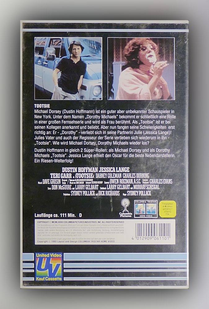 Video (VHS) Dustin Hoffmann in gleich 2 Super-Rollen: als Michael Dorsey und als Dorothy Michaels »Tootsie«. Jessica Lange erhielt den Oscar für die beste Nebendarstellerin. Ein Riesen-Welterfolg!