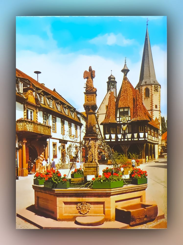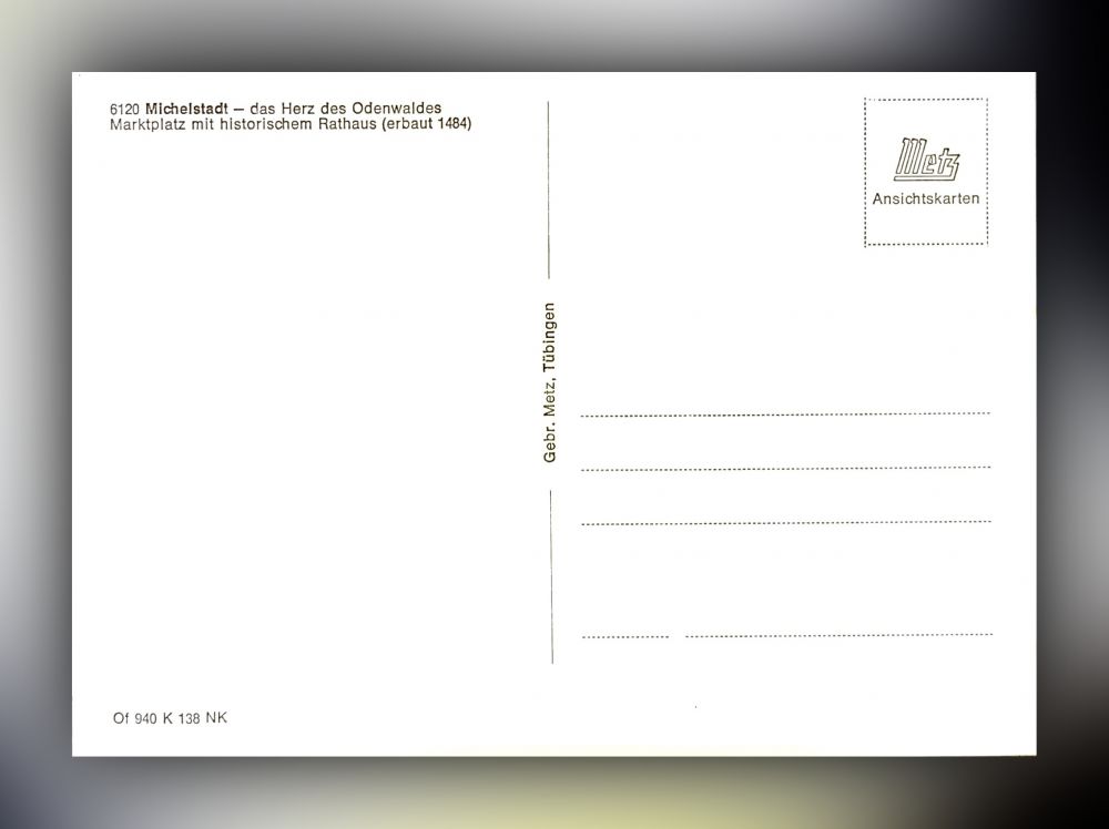 6120 Michelstadt - das Herz des Odenwaldes - Marktplatz mit historischem Rathaus (erbaut 1484) - Postkarte