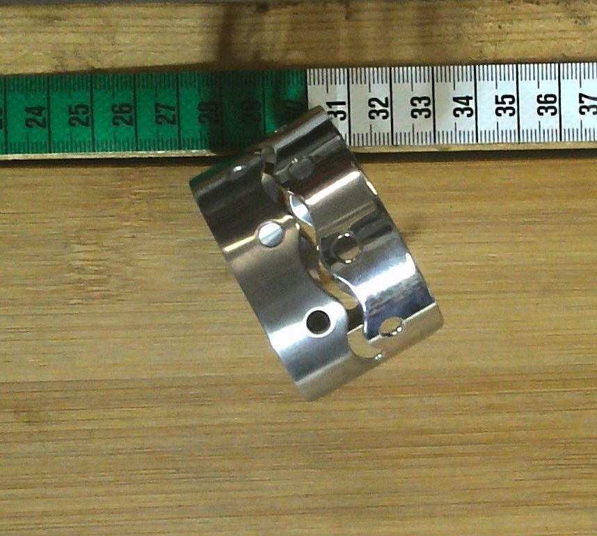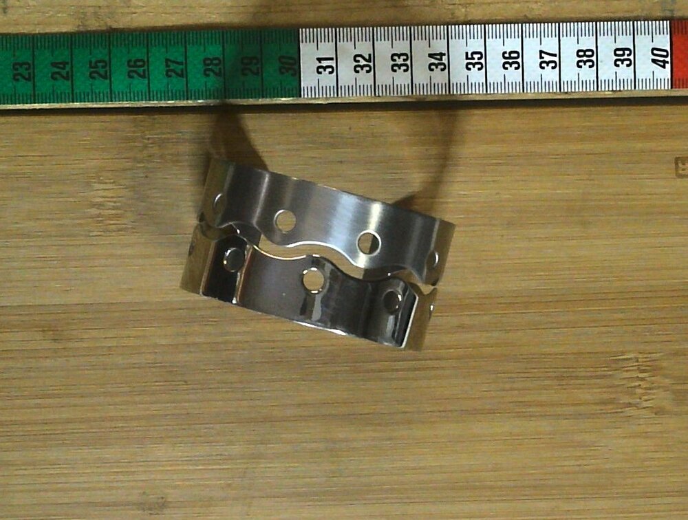 Armreif aus Edelstahl mit Aussparungen eine Längsseite poliert, andere matt geschliffen