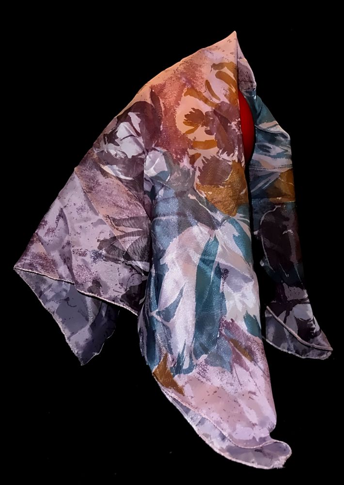 Kopftuch Halstuch Schal Schultertuch - Gaze rötlich / braun mit Blumen