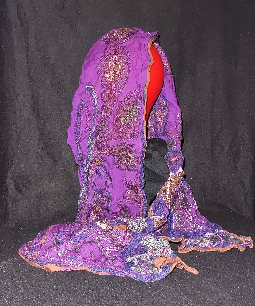 Kopftuch Halstuch Schal Schultertuch - lila mit Blumenornamenten