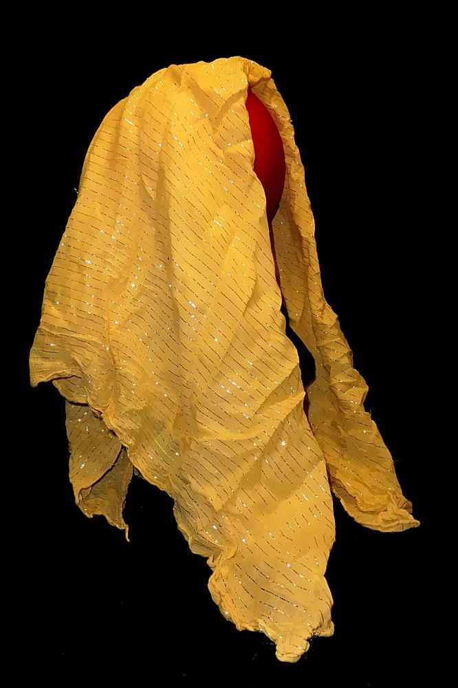 Kopftuch Halstuch Schal Schultertuch - gelb mit Silberfäden durchwirkt