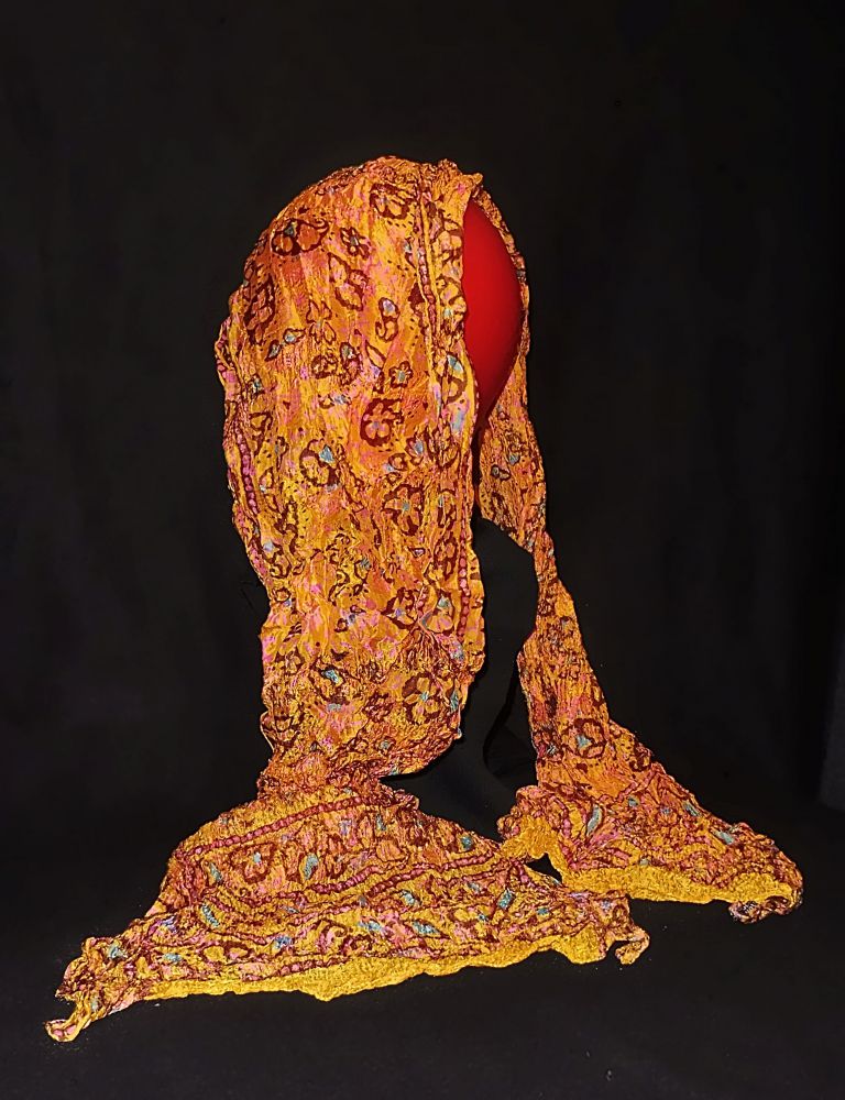 Kopftuch Halstuch Schal Schultertuch - orange mit Blüten