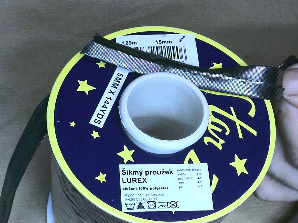 Rolle Lurex Einfaßband 15 mm breit schwarz/silberfarben