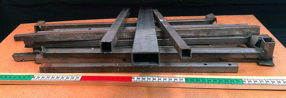 Artikel: Gebraucht - Mit Gebrauchsspuren -> teilweise etwas verbogen, angeschweißten Ansätzen und Schweißnahtresten, Bohrungen, angerostet