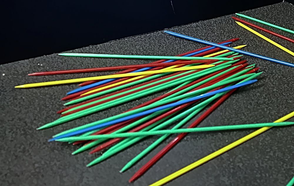 15 grüne, 13 rote, 4 gelbe und 3 rote Stäbe