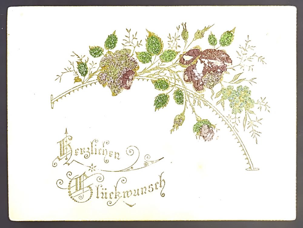 Alte Glückwunschkarte mit Blumenornamenten